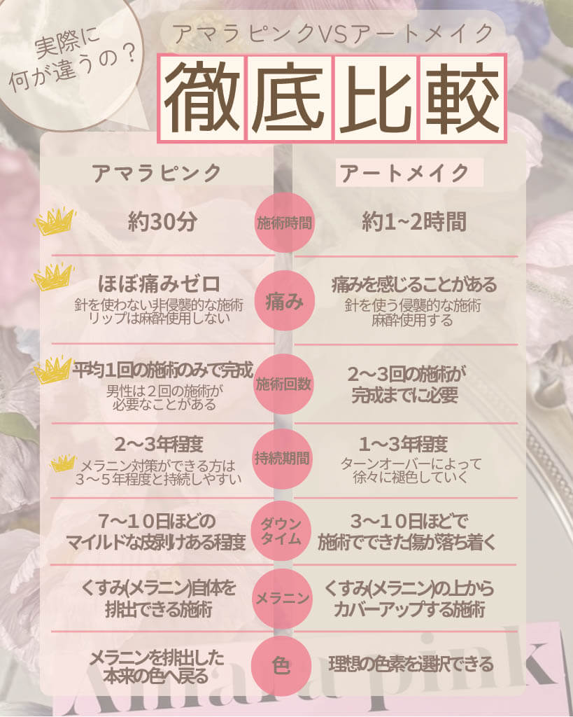 - これは肌の代謝や紫外線、施術後のケア、使用する色素の種類などによって異なります。