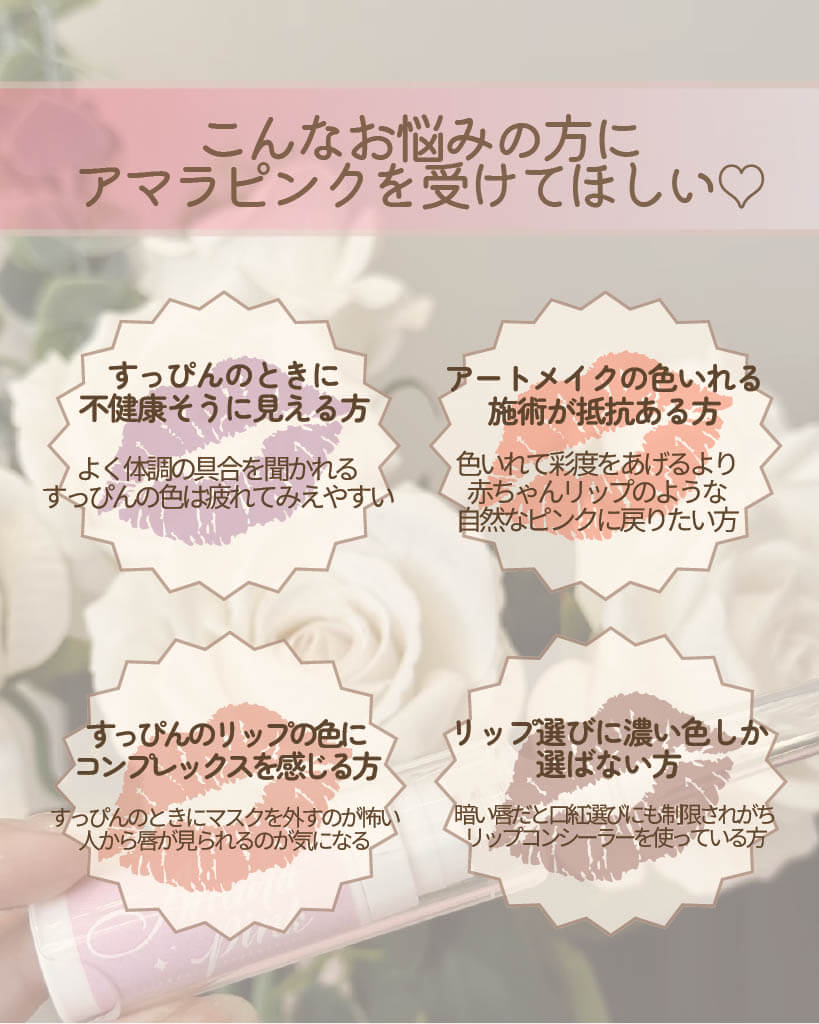- 口紅を塗らずとも健康的な印象を与えることができ、飲食による色落ちの心配も減ります。