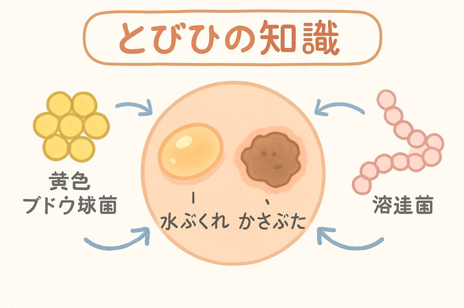 とびひには、主に二つのタイプがあります。それぞれの種類によって、症状の現れ方や治療へのアプローチが異なるため、ご自身の症状がどちらに当てはまるかを知っておくと、病状の理解が深まります。